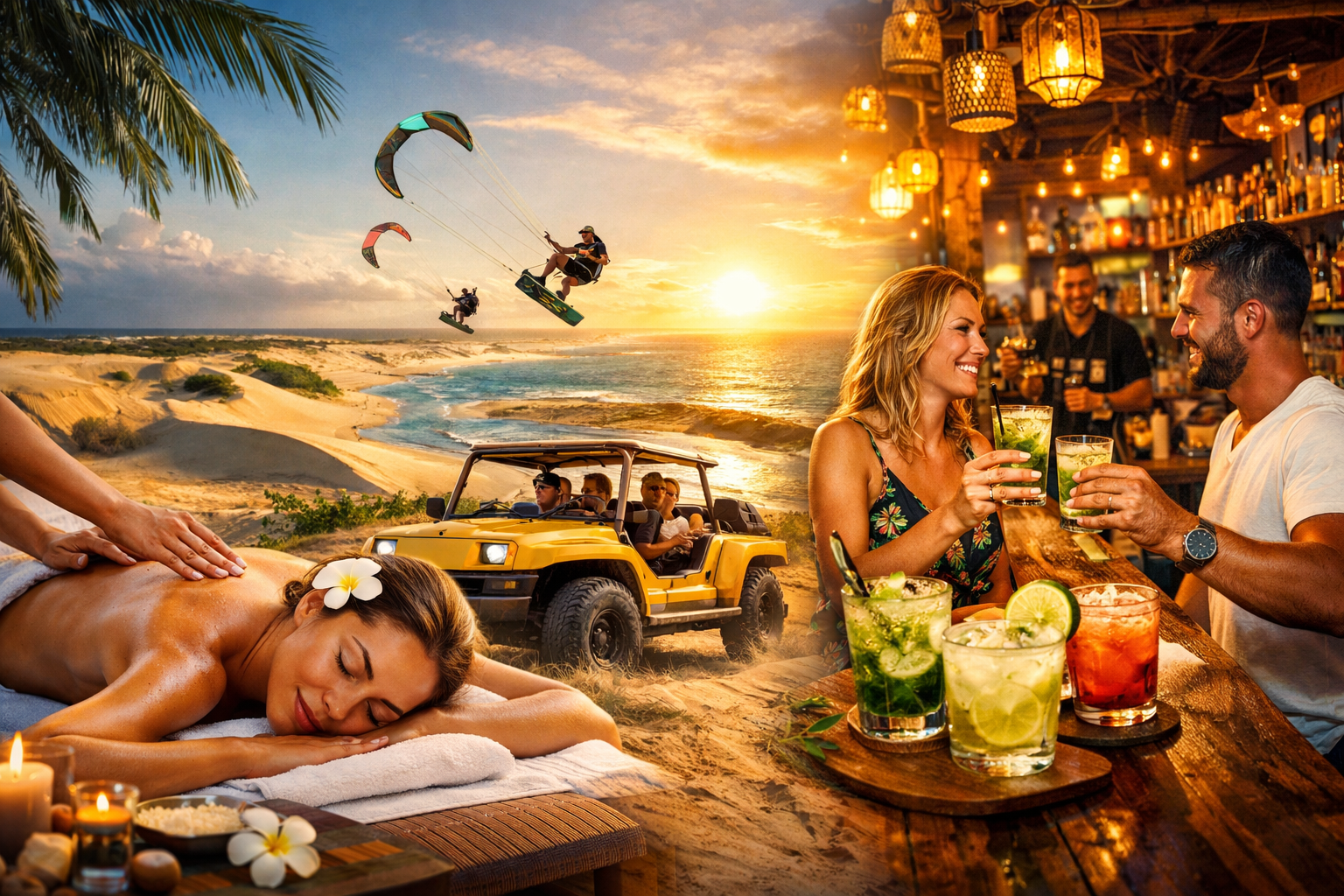 Is one of those rare places that feels untouched by time. Where wind, water, and light exist in perfect harmony. The steady trade winds whisper through swaying palms, carrying the quiet rhythm of a destination designed by nature for rest, adventure, and renewal. Mornings begin with golden sunrises over glassy water. Days unfold slowly, Kite sessions across the lagoon, barefoot walks along the shores, and lunches kissed by the ocean breeze. As the evening sets in, the sky ignites in spectacular colors, inviting you to pause, breathe, and simply exist.